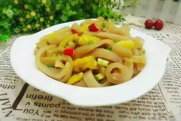 制作过程中,猪皮经过特殊工艺处理,使其表面光滑,口感弹牙。泡椒则是选用优质辣椒,经过精心调配,酸辣适中。